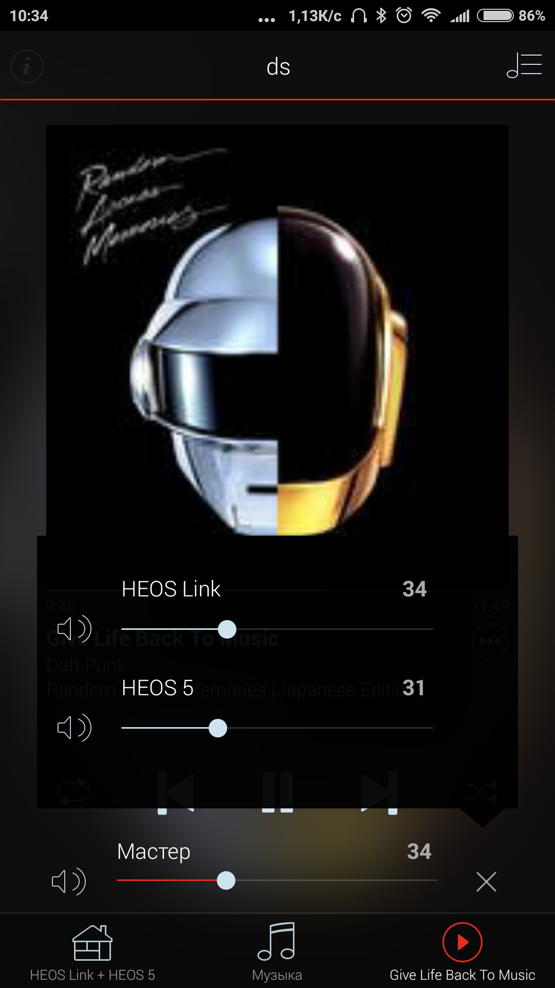 Еще одним вариантом взаимодействия с колонками является трансляция на них звука по Bluetooth (поддерживает только профиль трансляции стереозвука и управления, микрофонов в колонках нет). Хотя, конечно, в этом сценарии вся экосистема Heos остается не у дел и не используется совсем. Единственное, для чего может быть полезна программа — выступать в роли пульта управления (навигация, громкость). Но это, пожалуй, проще сделать с того же смартфона, откуда идет подключение по Bluetooth.