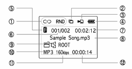 - Номер текущей дорожки/Количество дорожек в памяти (в нормальном режиме; в режиме папки, соответственно, отображается количество дороже в папке)
