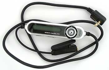 В комплекте также имеется пульт ДУ по имени MPIO RC1. Лучшего пульта, сказать по правде, я не встречал. Продумано абсолютно все, хотя, к сожалению, получился он крупноватым: 75.4 × 17.6 × 9.8 мм при массе 27 г. Снабжен однострочным дисплеем и необходимыми кнопками. Для того, чтобы вывести в одну строку всю информацию, которая помещается на трехстрочный основной дисплей, используется переключение режимов, совсем как в MPIO DMK. А органы управления больше напоминают MPIO DMB Plus, особенно джойстик на лицевой стороне рядом с дисплеем :) Пульт не крепится ни к чему и свободно висит на проводе, который (в отличие от большинства моделей) выходит из обоих сторон пульта. С одной стороны провод длинный и заканчивается штекером для подключения к плееру, с другой же — короткий с разъемом для вилки наушников и клипсой для крепления к одежде. Такая конструкция намного лучше, чем крапление клипсы прямо к пульту, а отделенное гнездо для наушников позволяет не беспокоиться о том, что какая-либо из моделей оных не подойдет.