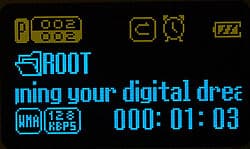 Если не считать иную технологию отображения и несколько другого расположения основных элементов, отличий от других моделей линейки нет. Одна строка отведена под имя текущего каталога, одна — под содержимое тэга или имя, две под информационные значки, тип файла и позицию проигрывания. Тэги поддерживаются в полной мере (и ID3 обеих версий, и WMA) без каких-либо ограничений на самых разных языках, включая и русский; при желании их можно отключить и пользоваться для ориентирования именами файлов. К сожалению, в отличие от FY300, но подобно предыдущим моделям из тэга берется только название композиции и имя автора, а вот информацию об альбоме приходится получать иными средствами (например, по названию каталога).