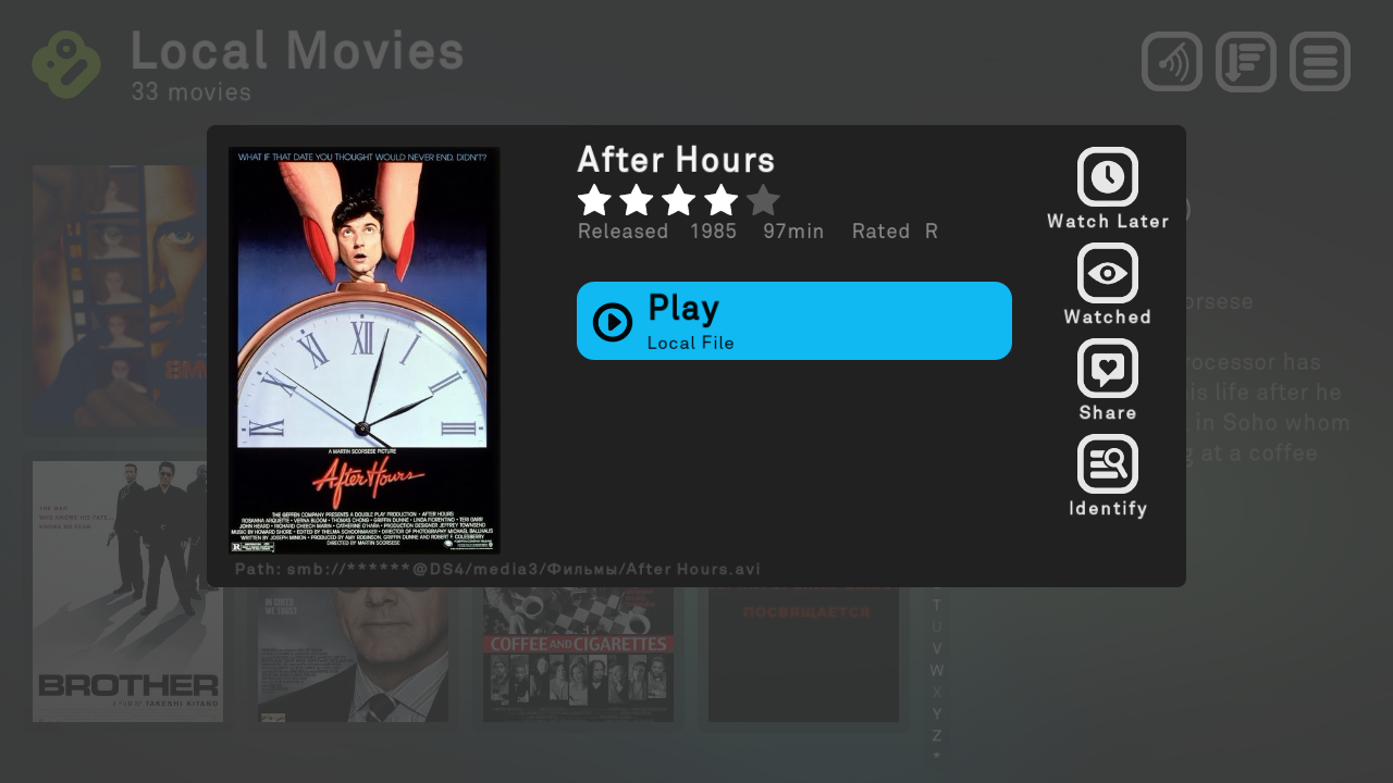 К сожалению, все это работает исключительно с английским языком — название фильма должно быть на английском и обложка с описанием также загружается на этом языке. Хотя в некоторых случаях он способен и понять русские названия, записанные транслитом, но это скорее исключение. Так что рекомендуется правильно называть ваши файлы, не усердствуя в указании кодеков и разрешений в именах.