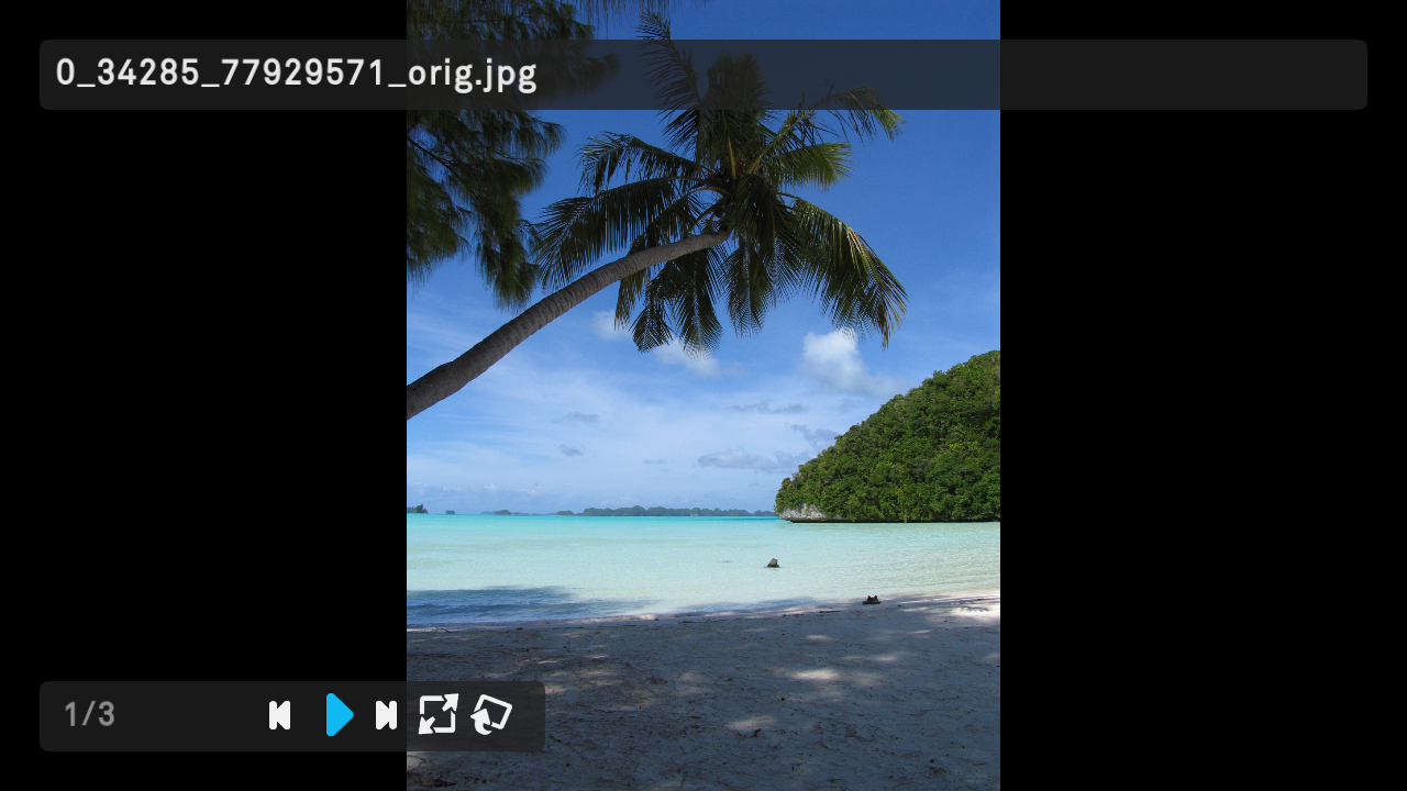 Просмотр фотографий может осуществляться со всех указанных ранее источников — локальных накопителей, сетевых папок и медиасерверов. Никаких дополнительных опций для этого режима нет. Выбираете нужную папку и запускаете слайд-шоу. В настройках плеера указывается время показа одной фотографии и интервал для эффекта перехода. Некоторую динамику процессу придает встроенный эффект «приближения» при автоматическом просмотре фотографий. Пользователю доступны опции по повороту (встроенный в EXIF флаг работает) и Pan/Zoom. Данных о фотографии вывести на экран нельзя. Размер изображений может быть очень большой. В частности у нас устройство работало с 12 МБ JPEG файлами разрешением более 20 Мп. Во время слайд-шоу плеер начинает загрузку следующего изображения во время показа предыдущего, так что никаких задержек при переходе не происходит.