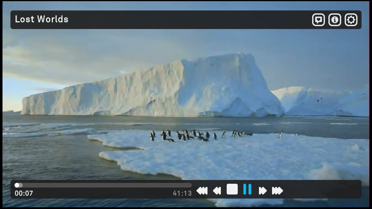 Управление во время просмотра достаточно простое — верхней кнопкой пульта можно ставить ролик на паузу, а стрелками влево-вправо быстро «перескакивать» назад и вперед. Есть и возможность ускоренной перемотки в двух направлениях. К сожалению, плеер не позволяет вам перейти на нужное место в файле по таймкоду. Это в некоторой степени компенсируется автоматическим запоминанием позиции остановки в файлах, в том числе и в ISO.