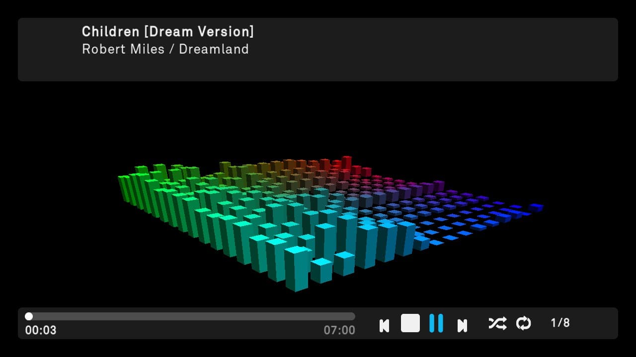 Режимы воспроизведения и навигация обычны — можно поставить на паузу, перейти на следующую или предыдущую дорожки, перемешать список воспроизведения, выбрать повтор одной дорожки или всех в списке. Узнать технические параметры файла невозможно. Плеер понимает многие многоканальные форматы, в частности способен вывести 5.1 FLAC именно в этом режиме. Правда, к сожалению, не всегда с нужной частотой дискретизации. В плане форматов аудиодорожек особенно радует широкая поддержка вариантов сжатия без потерь.