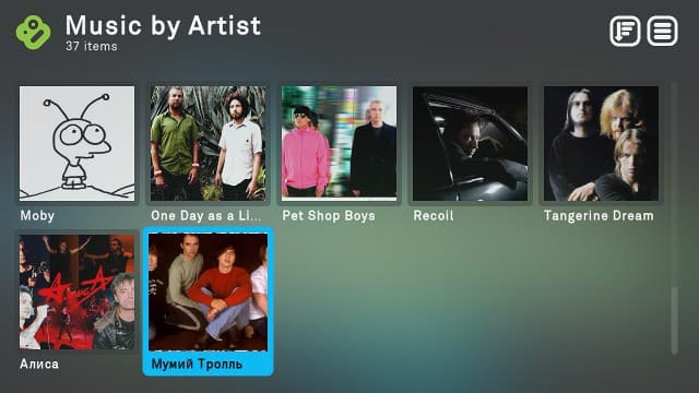 Конечно же, устройство ориентировано в основном на просмотр видео. Однако без поддержки работы с музыкой у него не было бы мало шансов на успех. Для аудиозаписей можно использовать локальные носители и сетевые серверы. Если источник был помечен для индексации, то плеер считывает теги музыкальных файлов и делает собственную библиотеку. В этом процессе он также пытается загрузить из интернета картинки для иконок артистов. Остальное все достаточно просто — или вы пользуетесь ссылкой «Music» из пункта «Files» и просматриваете индексированную библиотеку, или же обычным способом выбираете нужные композиции на локальных или сетевых ресурсах.
