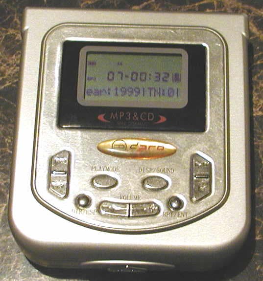 Итак, верхняя сегментная строка: индикатор емкости батарей/аккумуляторов и текущий режим проигрывания. Вторая строка также сегментная. Слева индикатор текущего режима — CD или МР3, справа — индикатор заполненности буфера антишока (по-моему, показывает температуру за окном :)). Посередине — номер текущего файла в памяти и текущая позиция проигрывания. Стоит отметить, что "плеер не врет" при воспроизведении файлов с VBR-кодированием, что явно его плюс.