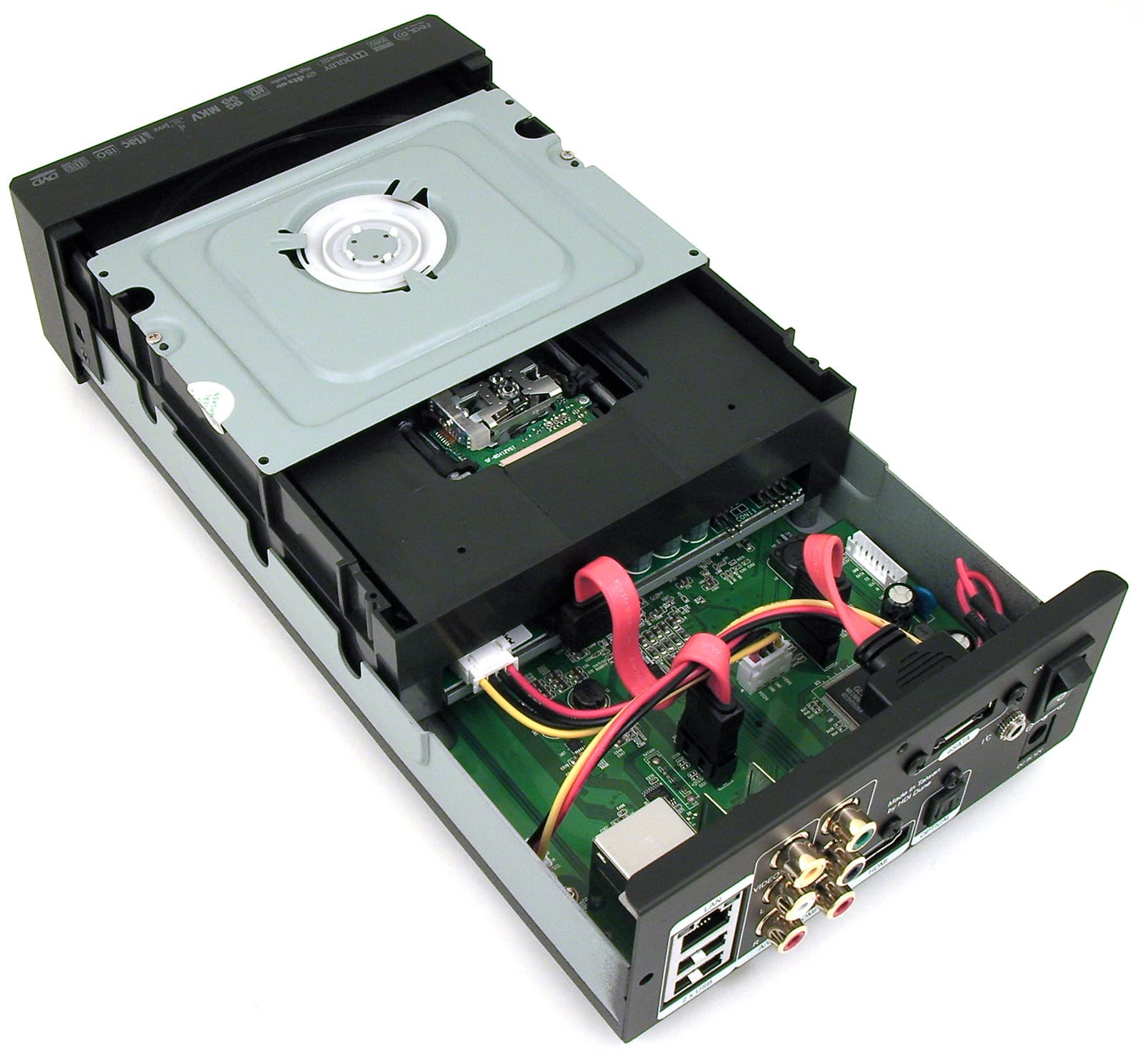 Работа Blu-ray-привода практически не слышна: как заявляет производитель, этот привод построен на основе механики и оптики Sony; используемые здесь комплектующие специально предназначены для встраивания в тихие домашние медиаустройства. Формат данного привода нестандартный, не «компьютерный», заменить его на любой SATA-привод не получится.
