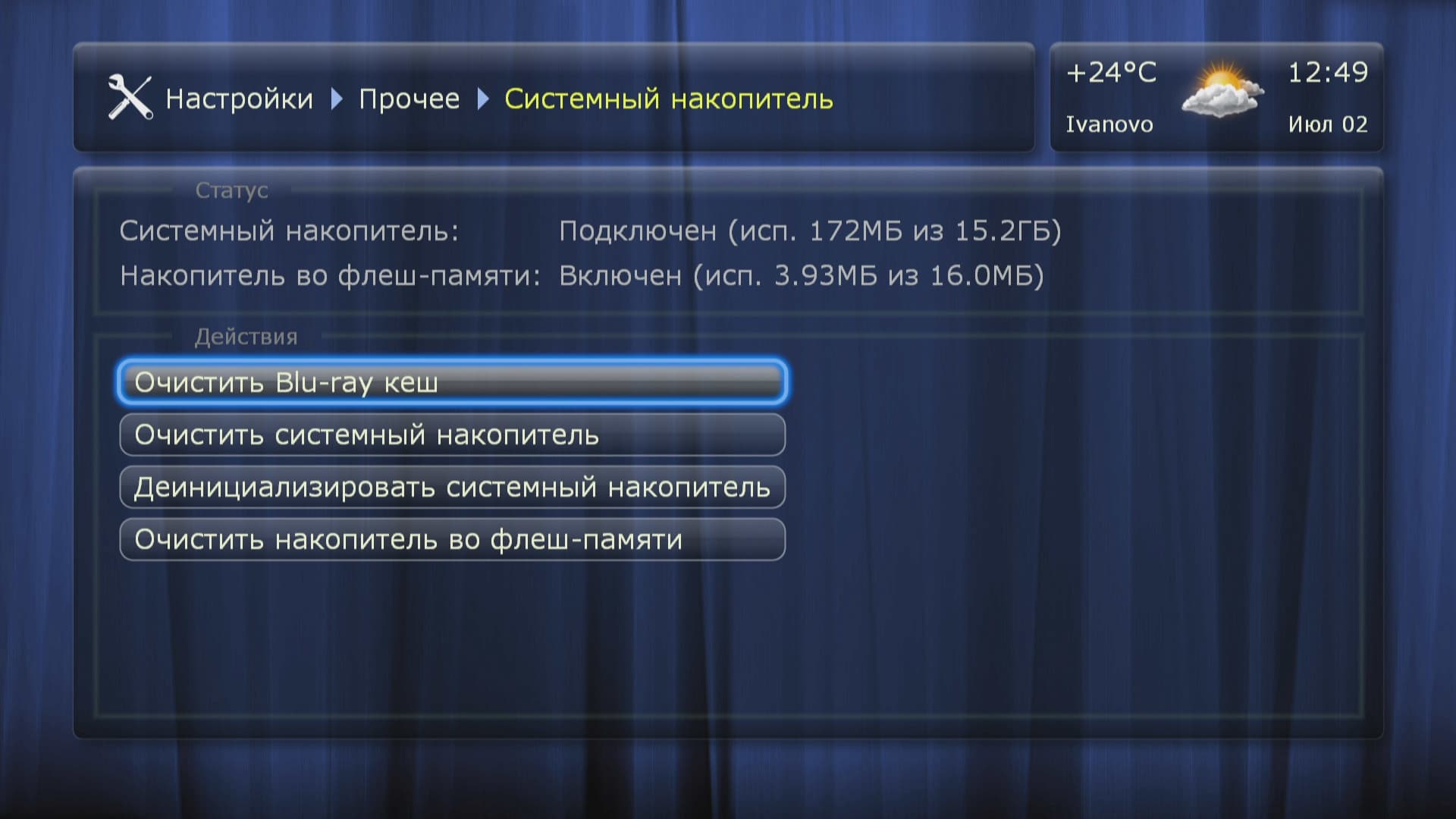 Поведение кнопок пульта ДУ, используемые кодировки, автозапуск оптического привода, включение режима ожидания, обновление прошивки, установка системного накопителя, настройка сохранения снимков экрана | Вывод информации о состоянии плеера |
