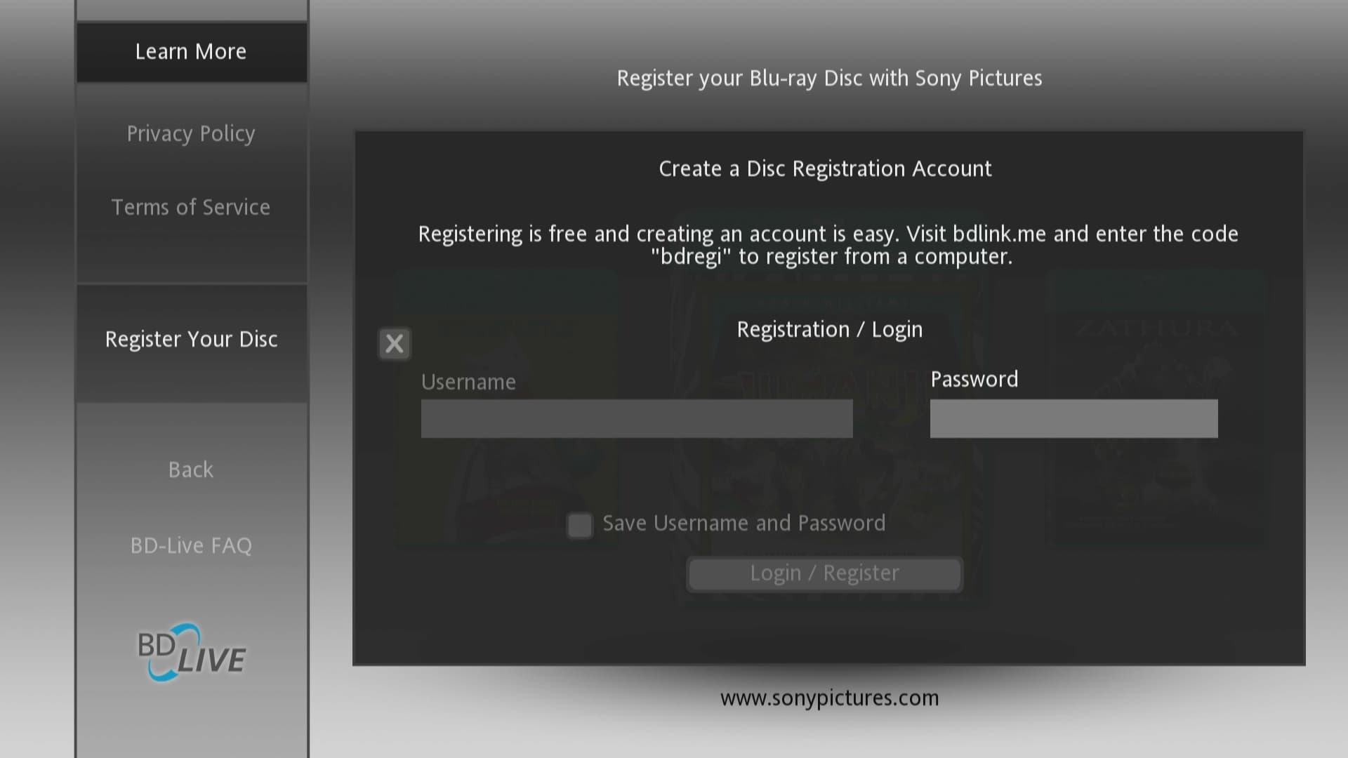 И — заработало! Загрузка сервиса BD-Live длится около двух минут, после чего пользователь попадает в некое подобие анимированного браузера с иконками Blu-ray-дисков с фильмами и мультяшками. Здесь можно просмотреть трейлеры к фильмам, а вот углубиться в изучение сервиса не получится — корпорация, которой принадлежит сервис, по традиции просит зарегистрировать диск и ввести некие логин и пароль.