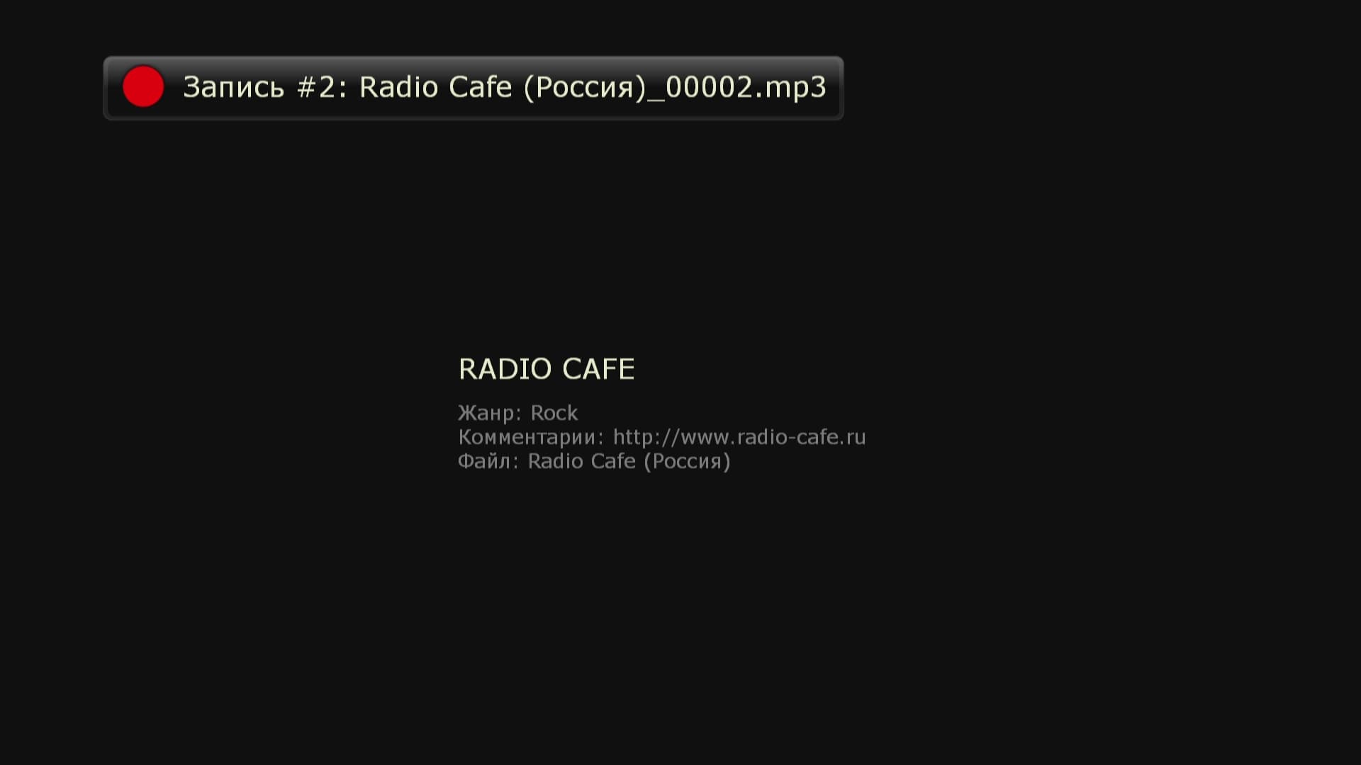 Во время прослушивания радиостанции становится доступной запись потока, она запускается нажатием соответствующей кнопки на пульте ДУ. Запись производится в формат MP3 с тем же битрейтом, с каким вещает станция; записанные файлы располагаются в папке Radio_recordings на подключённом к плееру накопителе (не системном!).