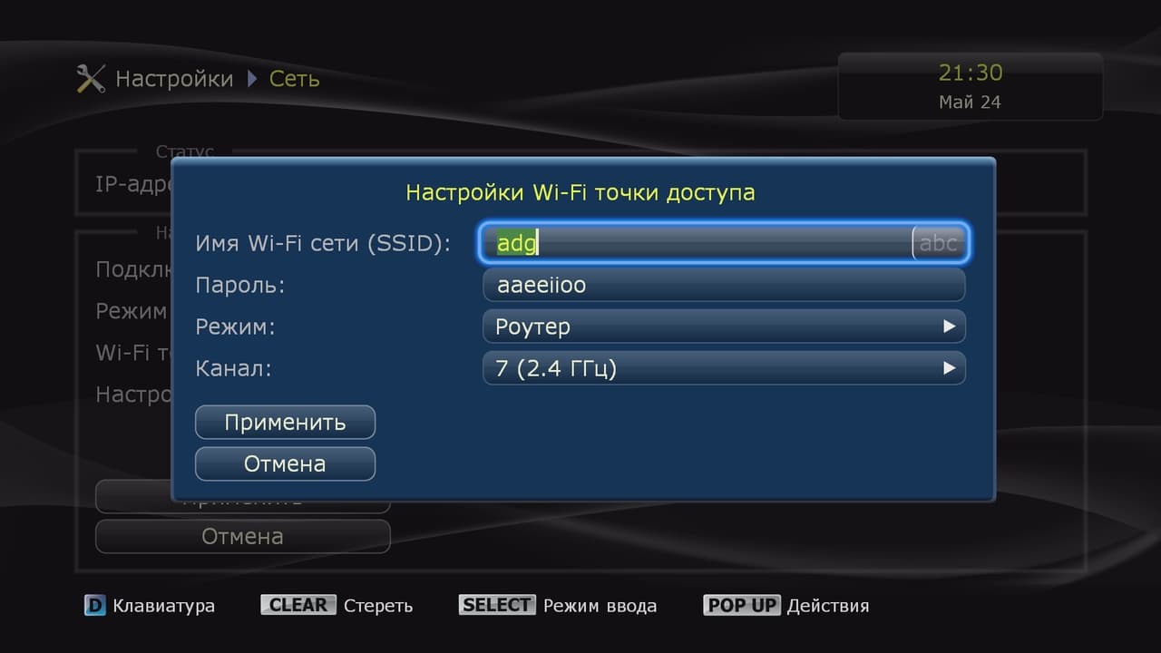 В сетевых настройках обращает на себя внимание наличие встроенного клиента PPPoE и возможность организации на базе плеера точки доступа к вашей локальной сети. Она умеет работать в любом из двух диапазонов, а при настройке нужно будет указать конкретный номер канала. Подключение может осуществляться как через технологию NAT, так и в режиме моста.