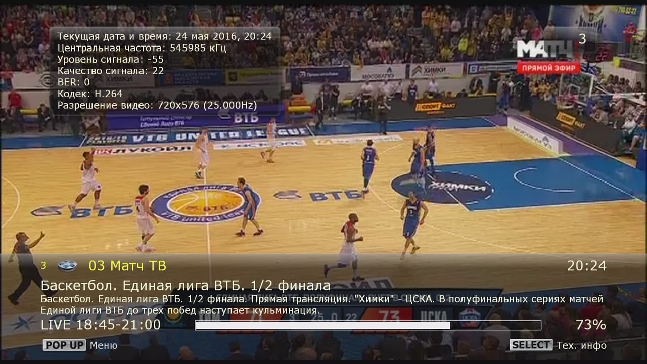 Во время просмотра пользователю доступны такие популярные операции как выбор звуковой дорожки, включение субтитров, изменение формата картинки, коррекция синхронизации звука и видео, быстрая навигация, отображение параметров контента и другие.