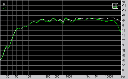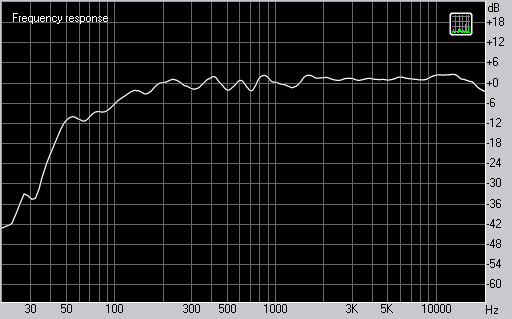 Посмотрим на график АЧХ тестируемых колонок, полученный воспроизведением тестируемой системой логарифмически нарастающего синуса (swept sine).