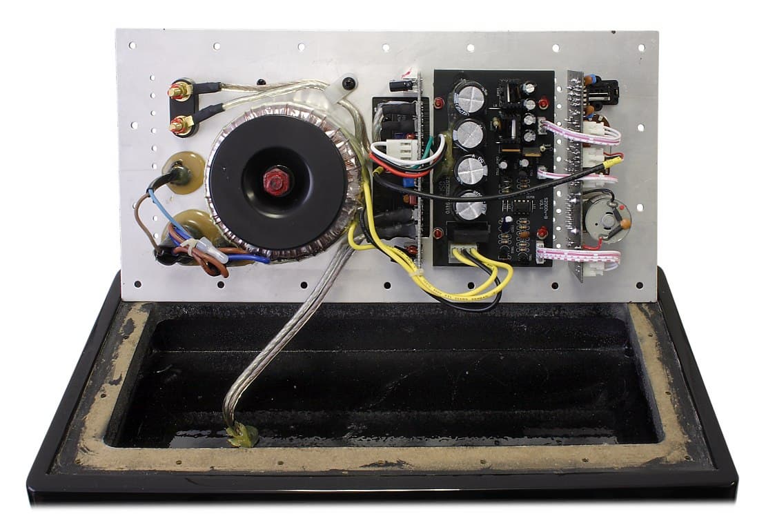 В усилительном тракте используется тороидальный трансформатор, обеспечивающий биполярное питание 22,5В на 2,25А. В качестве усилительных микросхем производитель использует два одноканальных усилителя мощности LM3886 от National Semiconductor.