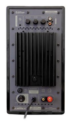 Усилительная часть находится в задней части одной из колонок. Большим плюсом является то, что усилитель расположен в отдельной изолированной камере.