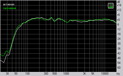 По просьбе читателей мы измерили активную и пассивную колонку. На приведенных графиках можно видеть, что графики практически одинаковые.