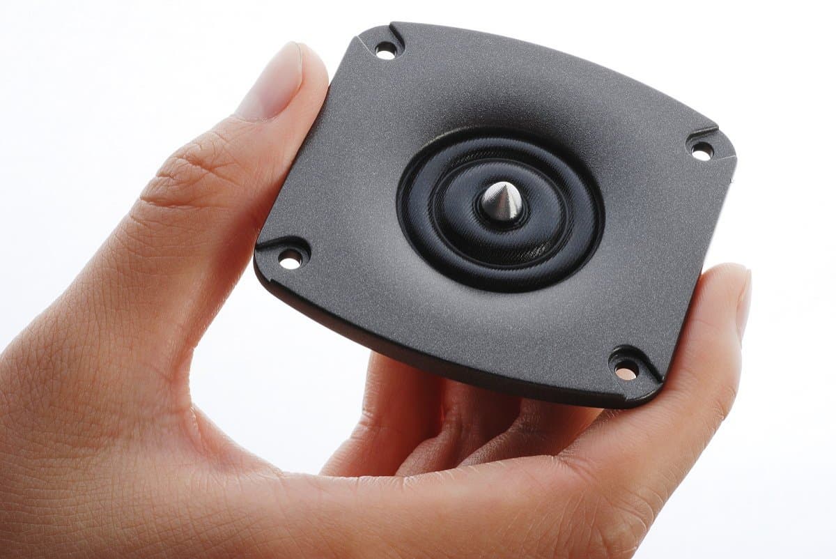 Размер диффузора СЧ-динамика составляет пять сантиметров. Стоит отметить, что резиновый подвес тактильно очень мягкий. Подключение головок осуществлено через кроссовер. Магнитные системы всех использующихся динамиков имеют магнитное экранирование. Колоночки устанавливаются на ножки. Кроме этого, сзади корпуса предусмотрены отверстия для крепления сателлитов на стену.