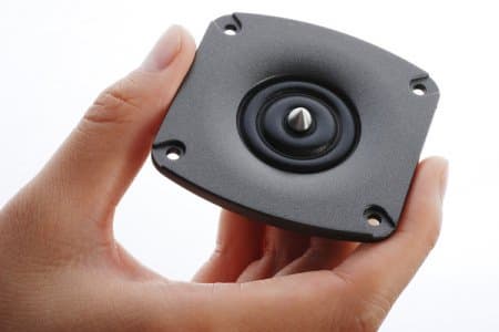На фото вы можете видеть необычную конструкцию пищалки. В центре расположен металлический пулевидный конус, играющий фазовыравнивающую роль. Диафрагма изготовлена из ткани, но для большей жесткости имеет профиль ripple wave.