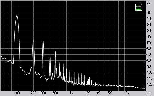 Спектр сигнала, воспроизводимого наушниками при подаче частоты 100 Гц
