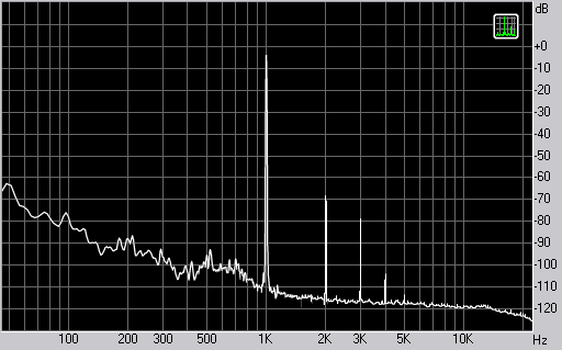 Спектр сигнала, воспроизводимого наушниками при подаче частоты 1 кГц