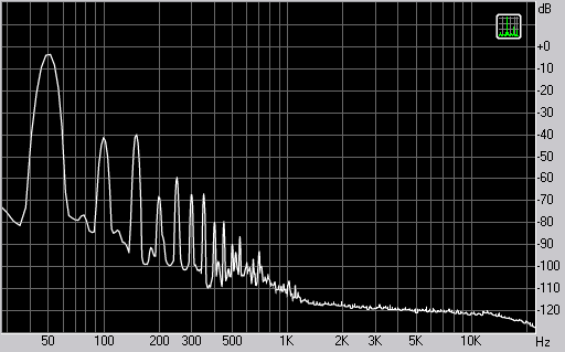 Спектр сигнала, воспроизводимого наушниками при подаче частоты 50 Гц