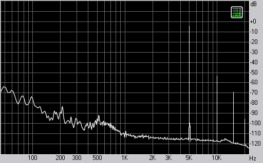 Спектр сигнала, воспроизводимого наушниками при подаче частоты 5 кГц