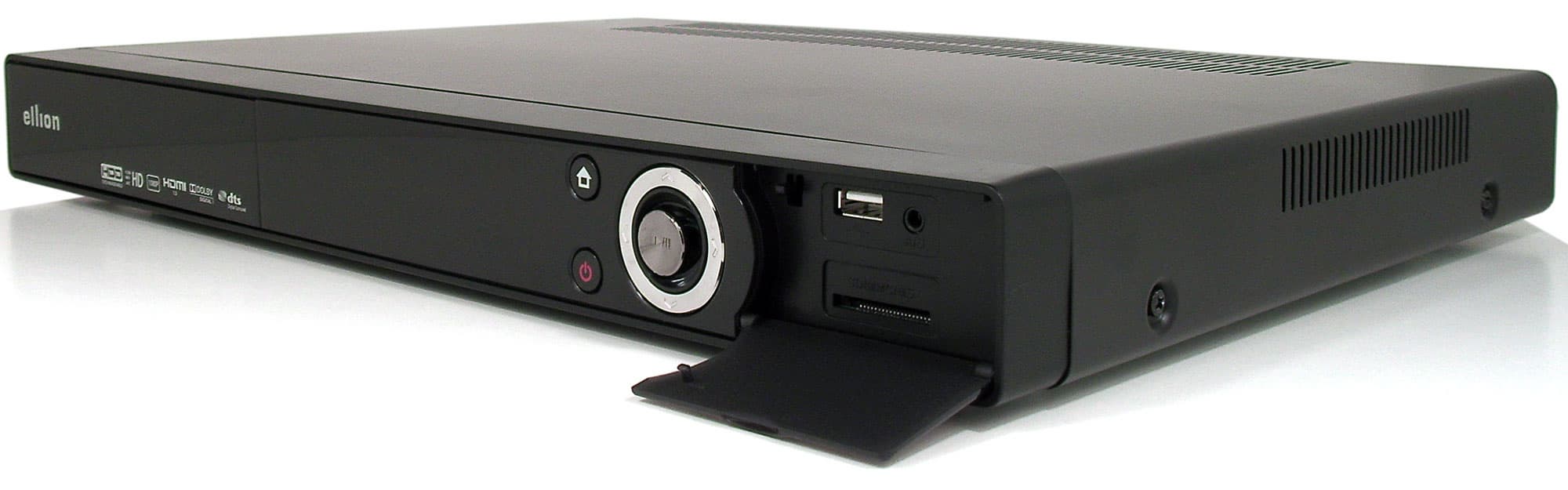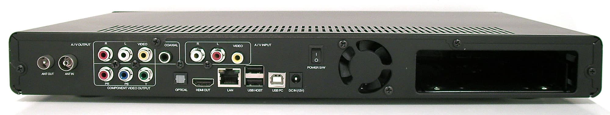 Левая часть лицевой панели рекордера выполнена также в виде откидной дверцы. Правда, она фиксируется двумя липучками, и, очевидно, задумывалась как неоткидывающаяся. И в самом деле, назначение её туманно: жёсткий диск сюда не сунешь. На самом-то деле разработчик зарезервировал этот отсек под опциональный привод Blu-ray, и при наличии прямых рук апгрейд легко произвести самому — для этого придётся демонтировать внутренний пластиковый контейнер для HDD. Правда, следует иметь в виду, что такое действие приведёт к потере гарантии на аппарат.