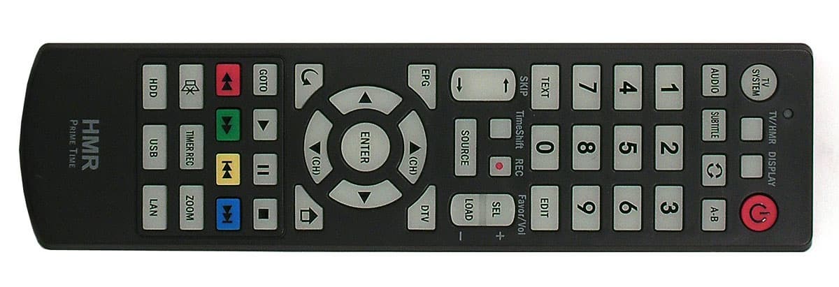 Прилагаемый инфракрасный пульт оснащён большими кнопками с крупными надписями — забота о людях со слабым зрением. Эти кнопки к тому же фосфорные, светятся в темноте. Вверху пульта имеется красный светодиод, мигающий всякий раз при нажатии на любую из кнопок пульта.