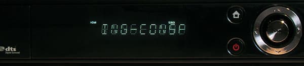 Расположенный на лицевой стороне аппарата буквенно-цифровой вакуумно-люминесцентный экран напомнил те самые стародавние видеомагнитофоны — они все снабжались именно такими экранами. Во время работы рекордера на экране отображаются (прокручиваются) английские наименования пунктов меню, в которых в данный момент находится пользователь, наименования выделенных и проигрываемых файлов. Кириллица не поддерживается, вместо неё отображается какая-то абракадабра (отметим: в настоящее время разработчик усовершенствует прошивку, в следующей её версии появятся и кириллица, и другие шрифты). К сожалению, названия каталогов, в которые заходит пользователь, на этом экране не отображаются, а значит, без телевизора тут вряд ли посёрфишь по папкам на диске. Здесь же, в разных углах экрана, имеется информация об используемом видеовыходе и режиме работы. Индикатор прогресса (времени) воспроизведения отсутствует.