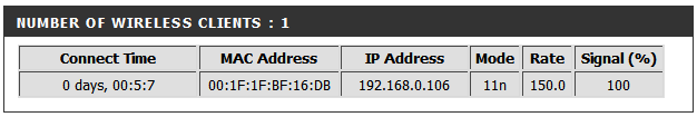 При копировании с плеера на ПК скорость становится чуть выше, и достигает 7-8 МБ/сек. С FTP-соединением каша получается не столь густая: всего-то 2-3 МБ/сек при копировании на плеер, и 4-5 МБ/сек при копировании с плеера. Что касается беспроводной сети, то скорость её работы зависит в частности от USB-адаптера WiFi, который вы приобретёте. Следует знать, что рассматриваемый рекордер поддерживает адаптеры со стандартом 802.11n. Ниже на скриншоте состояния роутера это явственно видно — наш рекордер с MAC-адресом 00:1F:1F:BF:16:DB подключён к роутеру на скорости 11n.