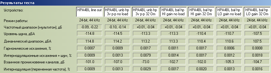 | Тестируемое устройство | HPA4BL line out ASIO |