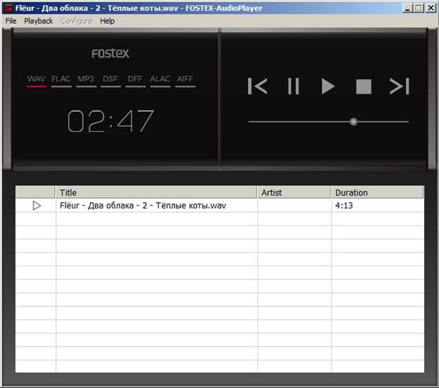 Помимо ASIO-драйвера, производитель предлагает симпатичный и минималистичный плеер, работающий через ASIO-драйвер исключительно с продуктами Fostex.