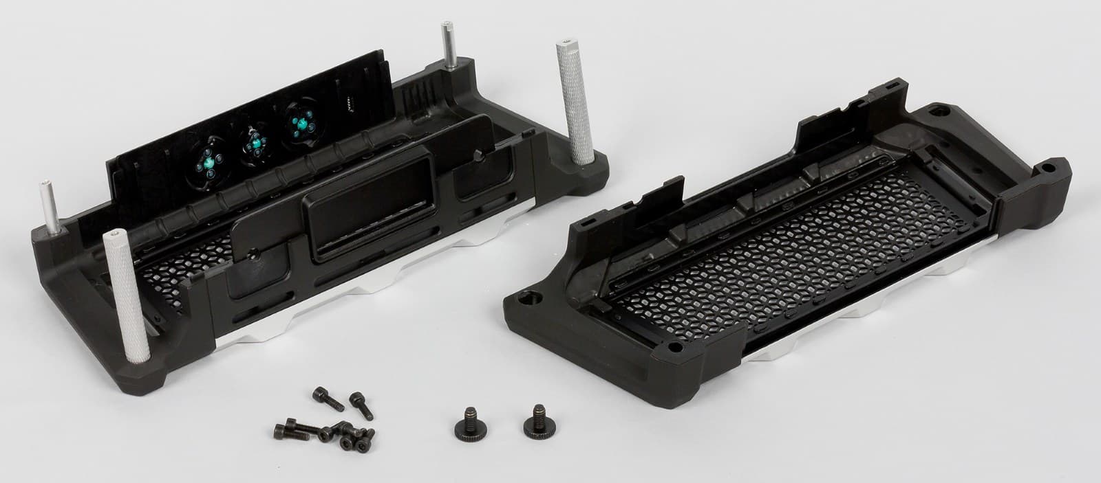 Для этого необходимо открутить по четыре винтика с каждой стороны. Футляр распадется на две половинки, соединенные металлическими штангами. Они образуют жесткий каркас.