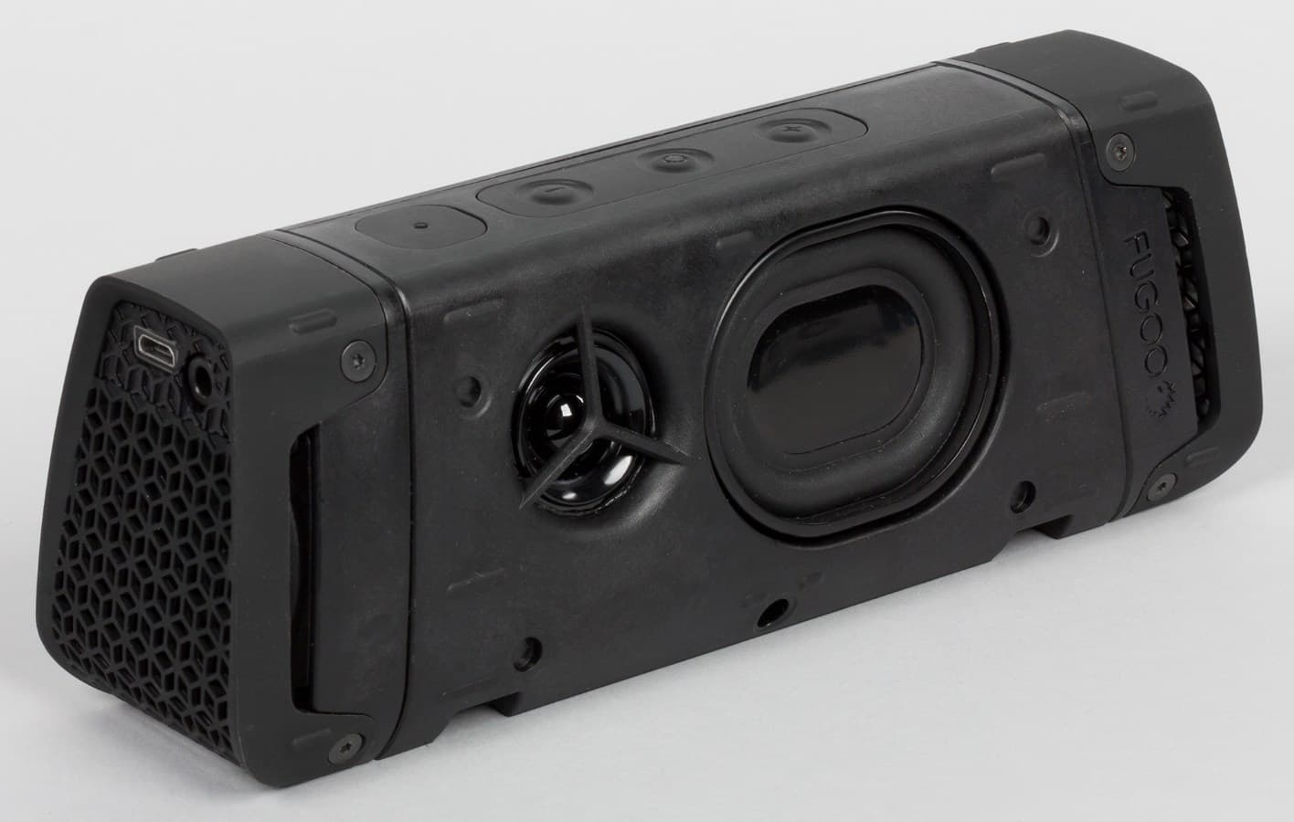 А вот по звучанию Fugoo Tough значительно отличается от Creative Sound Blaster Roar. В первую очередь, заметен более открытый и разборчивый звук. У Fugoo лучше проработан верхний регистр, за счет чего более натурально звучат тембры акустических инструментов (в особенности это касается гитар). Но это имеет и неприятный эффект — в некоторых вокальных партиях возникает эффект «шепелявости». У Sound Blaster Roar насыщенней и богаче звучит нижний регистр.