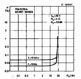 График зависимости THD от мощности микросхемы TDA2030A