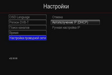| Выбор языка меню | Выбор региона цифрового телевидения | Выбор способа установки времени |