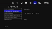 В первую очередь следует, конечно же, проверить «свежесть» прошивки, ведь от неё зависит не только функциональность плеера, но и содержание настоящего обзора. Для такой проверки не нужно специально посещать сайт производителя посредством ПК — достаточно запустить на плеере интернет-службы, зайти в раздел Новости и просмотреть свеженькие записи в ленте Gmini. Ого, да тут на первом же месте новейшая прошивка для нашего плеера!