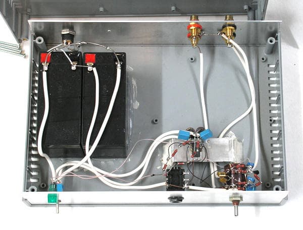 Внешний вид усилителя не претендует на какие-то изыски, т.к. усилитель делался просто для себя. Питание организовано от собственного аккумулятора.
