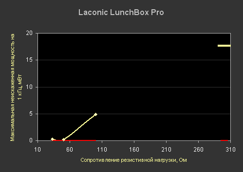 Есть мнение, что у ламповый усилитель должен давать теплое и мягкое звучание, а перегрузка незаметна или даже дает "приятные искажения". Ничего этого нет в Laconic Lunch Box Pro, по крайней мере в столь больших масштабах. При прослушивании Laconic в режиме неискаженной громкости отличить его от "транзисторных собратьев" совсем не просто. А когда дело доходит то перегрузки, то слышен аналогичный хрип, лишь с несколько меньшей резкостью. Ничего "приятного" во время перегрузки заметить не удалось.