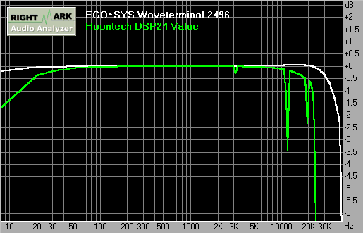 DSP24 Value в этом тесте лучше, чем в полтора раза более дешёвая Audigy, но по шумам — достаточно далеко от втрое более дорогой Waveterminal (хоть она и на том же самом кодеке!)