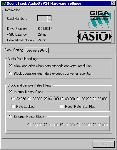 Device Selected: Audio DSP24 DirectSound Driv