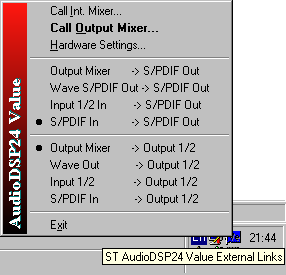 Судя по тому, что характеристики в 24 бит 96 кГц хуже, чем в 16 бит 44,1 кГц, карту ST Audio DSP24 Value (по крайней мере с текущими драйверами) использовать в этом режиме для работы крайне не рекомендуется. Более того, при попытке подачи синусоиды с частотой, превышающей 24 кГц, в слышимом диапазоне появляются вполне ощутимые гармоники до уровня в половину амплитуды исходного колебания.