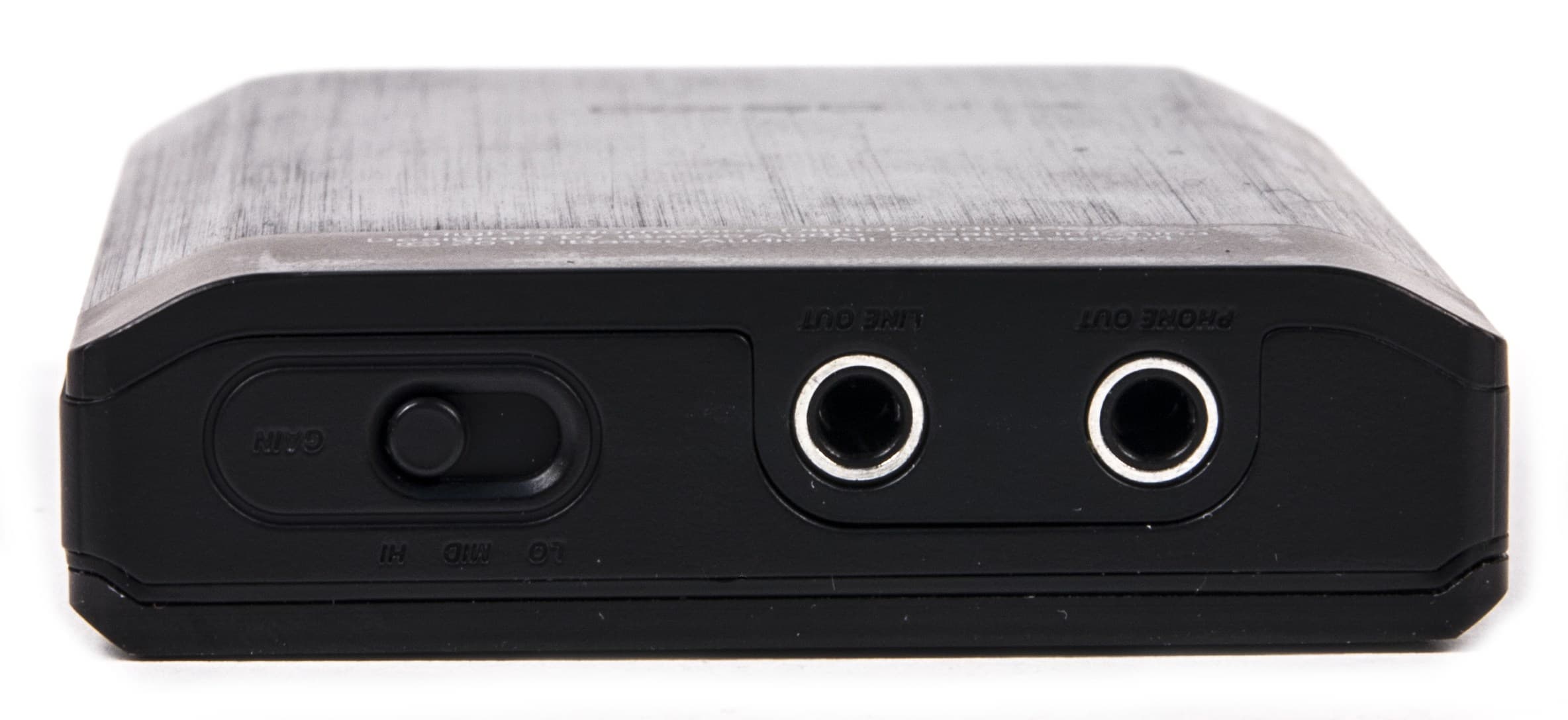 Снизу находится разъем для наушников, линейный выход и переключатель режимов усилителя. Мы заметили, что переключение с Mid на Hi требует заметно больше усилие, чем остальные манипуляции с ползунком.