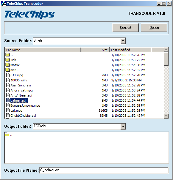 О дополнительном ПО (или отсутствие такового) самого i-BEAD700 сказать пока практически ничего нельзя, но вот интересная программа, предназначенная для перекодирования видео, под названием Telechips Transcoder нашего внимания, безусловно, заслуживает. Главное окно программы выглядит очень просто, предлагая нам выбрать файл для перекодирования и папку, куда складывать перекодированное видео.