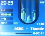 При взгляде на экран на ум приходит только один эпитет — шикарно. Несмотря на скромный размер, всего 1.2 дюйма в диагонали, дисплей имеет разрешение 128 × 160 точек, что обеспечивает великолепную четкость изображения. Дизайн экрана тоже выше всяких похвал, а спектральный анализатор смотрится особенно симпатично, как, впрочем, и стильно анимированные меню. Однако небольшое подтормаживание весьма портит благоприятное ощущение и часто вызывает раздражение, особенно при навигации по меню (к счастью, тормозит только «красивое» главное меню, все подменю более просты и отрисовываются мгновенно). Имеется также возможность отображения любого выбранного пользователем JPG на экране проигрывания (на мой взгляд, не очень красиво получилось), присутствуют дополнительные более разнообразные и яркие спектральные анализаторы (очень напоминают все тот же Windows Media Player), но красивыми я бы их тоже не назвал, да и тормозят они не по-детски. И последний режим работы главного экрана — отображение лирики, которым мало кто пользуется, но упомянуть о котором необходимо.