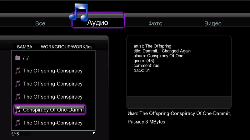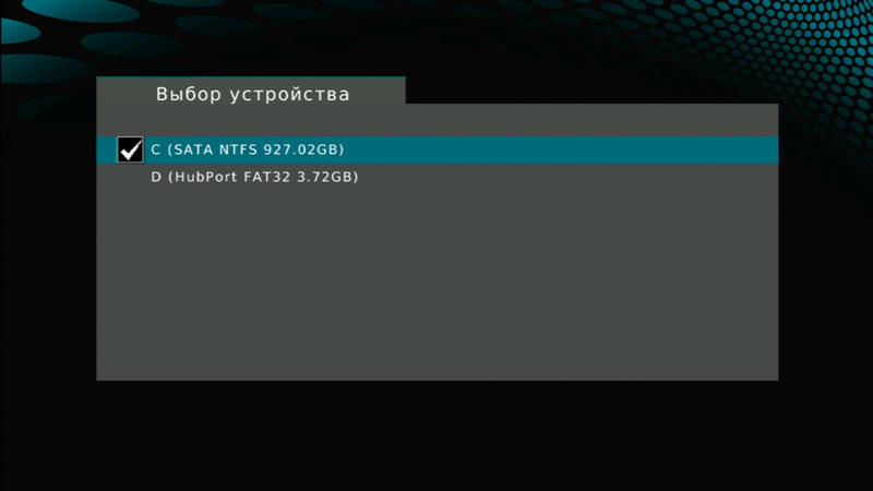 Здесь имеется список всех носителей, которые в данный момент подключены к плееру. Жёсткий диск, флэшки, внешний жёсткий диск — всё то, что при загрузке распознал плеер.