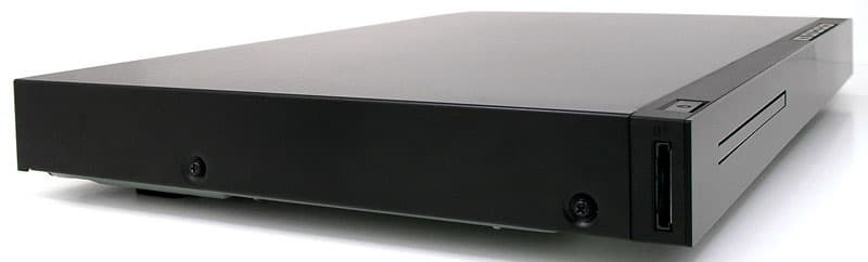 Крышка и шасси устройства выполнены из метала, пластмасса присутствует лишь на лицевой панели: с боков и сверху пластик матовый, а спереди — глянцевый, чёрно-зеркальный. Плеер не имеет встроенного экрана, о работе аппарата можно догадаться лишь по состоянию единственного светодиодного индикатора: красный цвет — режим ожидания, благородный синий — плеер активен. Левую сторону лицевой панели украшает узкая длинная полоска DVD-привода, а в левом торце расположен слот для карты памяти. При этом вставленная в него карта утапливается не полностью, а лишь наполовину.