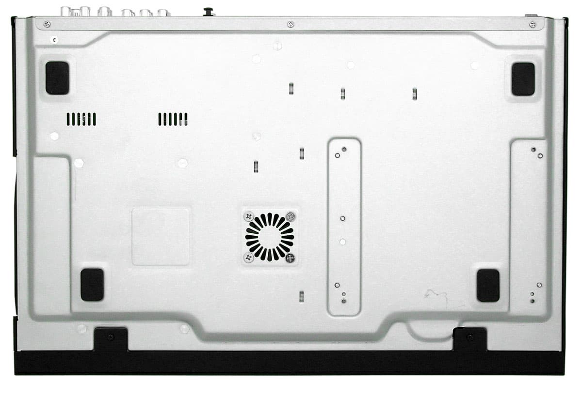 В днище аппарата имеются вентиляционные отверстия, центральная «ромашка» выдаёт расположение внутреннего вентилятора, работающего на выдув. Резиновые ножки плеера приподнимают корпус на полсантиметра, что оказывается вполне достаточно для выброса отработанного воздуха.