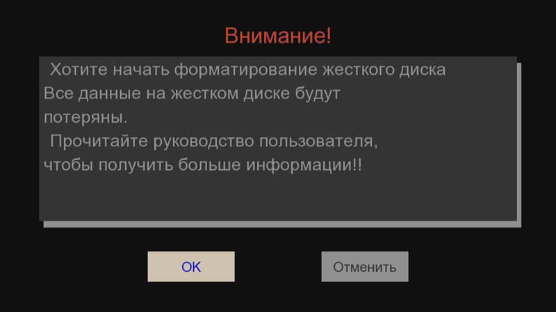 При первом включении плеера при впервые установленном жёстком диске от пользователя требуется отформатировать носитель. Вполне справедливое требование, поскольку большинство заявленных функций без такого форматирования работать не будут.
