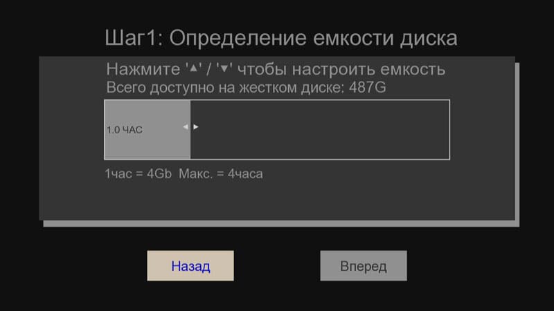 В начале форматирования аппарат предлагает определиться с объёмом раздела, который будет отведён под видеозапись и работу режима TimeShift.